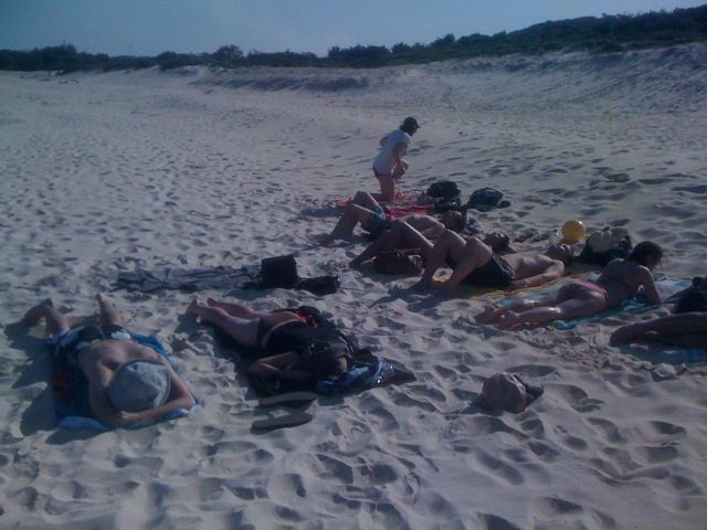 …bin ich mit an die Nelson Bay im Norden (ca. 200Km) von Sydney entfernt gefahren. Nachdem wir gestern am Strand waren und dann den Sonnenuntergang an der Küste beobachtet haben, sind wir heute morgen in den wanderdünen gewesen und sind sandboard gefahren. Nach dem Lunch sind wir nun wieder erschöpft am Strand.