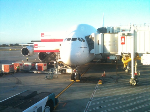 The First Three Pictures are from the First Part of The flight and the last two from the A380 and the Arrival.
